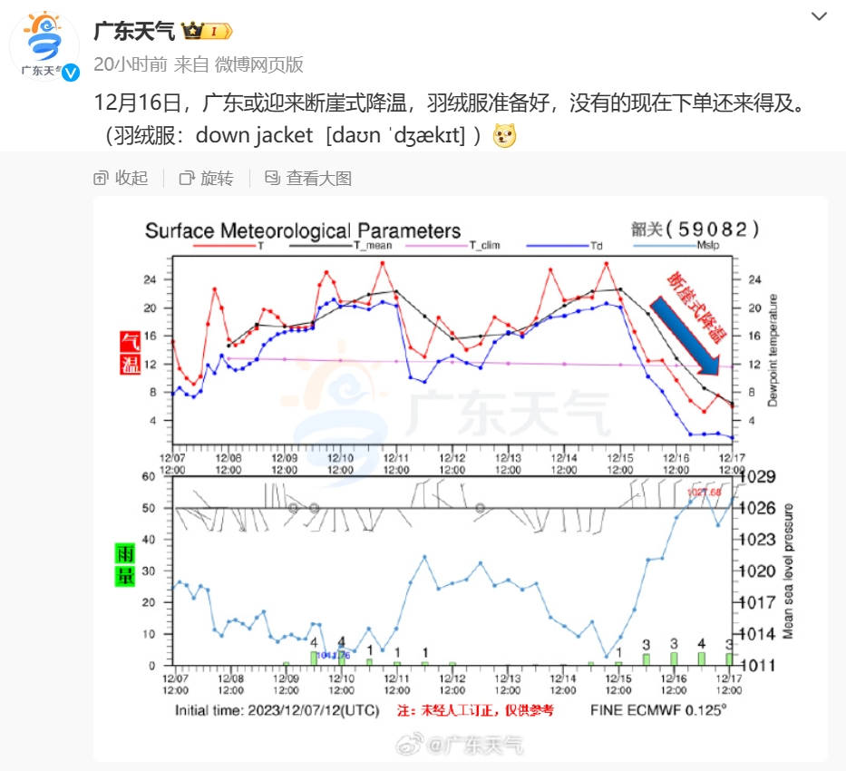 展望15-16日,有小雨,氣溫先升后降。