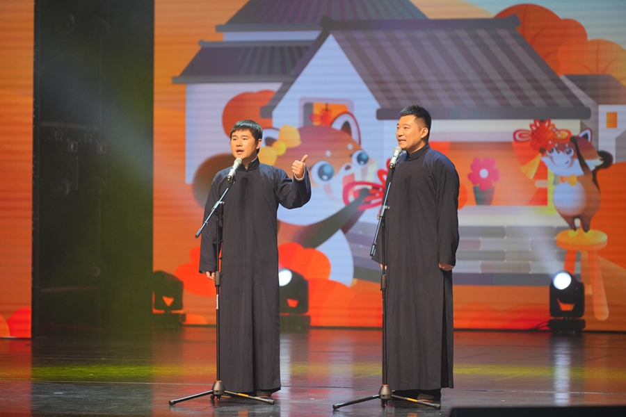 德云社的楊霄鐸、肖霄雨為觀眾帶來相聲表演《節(jié)日游戲》。