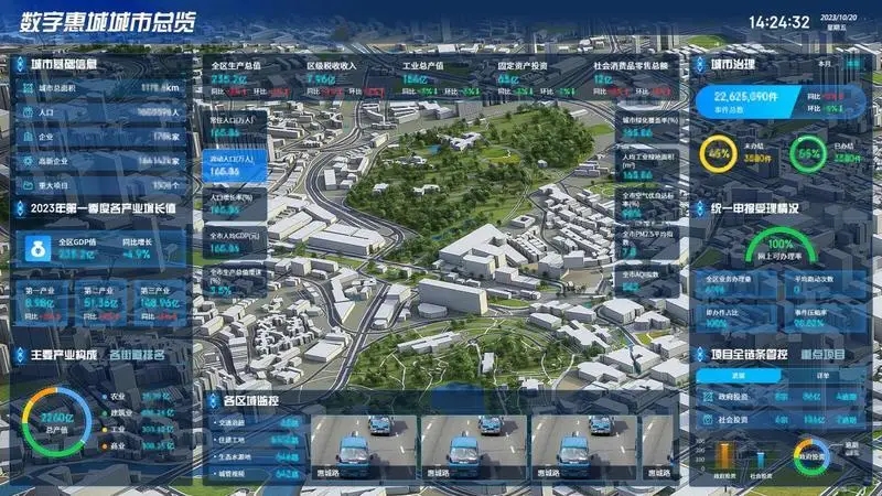 11月,惠城區(qū)憑借“惠城區(qū)智慧城市(一期)建設(shè)項目”創(chuàng)新實踐,獲評“中國領(lǐng)軍智慧城區(qū)”。圖為數(shù)字惠城城市總覽。