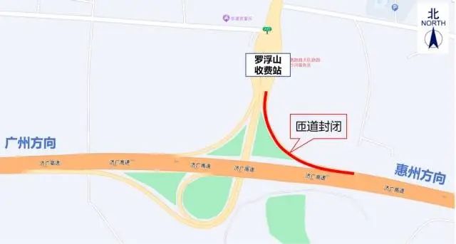 2023年12月18日22:00至次日07:00,G35濟(jì)廣高速公路東往西(惠州往廣州)方向羅浮山收費(fèi)站出口匝道封閉施工(見圖2),往長寧羅浮山的車輛可提前在龍溪收費(fèi)站下高速繞行國道G324,或在園洲收費(fèi)站下高速繞行國道G324。
