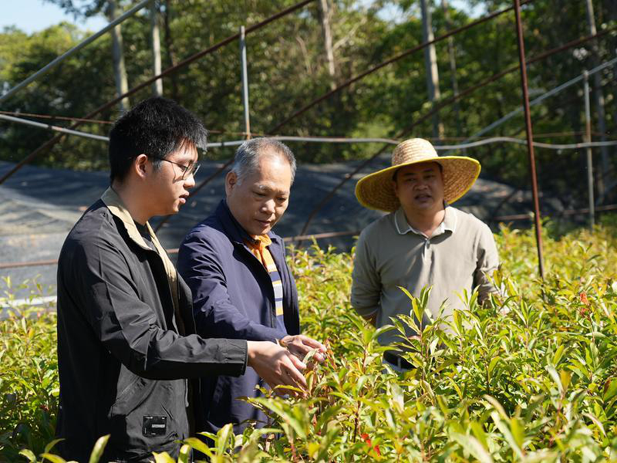 惠州林業(yè)部門工作人員到惠州市沁林綠化有限公司苗圃場查看苗木生長情況。