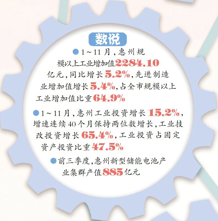 今年前三季度,惠州新型儲能電池產(chǎn)業(yè)集群產(chǎn)值885億元。轉(zhuǎn)型升級動力增強,工業(yè)技改投資增長68.2%,創(chuàng)年內(nèi)高點。