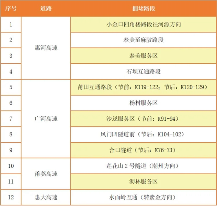 結(jié)合往年交通運(yùn)行情況,元旦節(jié)假期我市高速公路、重點(diǎn)景點(diǎn)周邊道路等易出現(xiàn)擁堵區(qū)域。其中,惠河高速小金口四角樓路段往河源方向、泰美服務(wù)區(qū)、石壩互通路段,廣河高速莆田互通路段、楊村服務(wù)區(qū)等路段容易出現(xiàn)車輛緩慢通行現(xiàn)象。