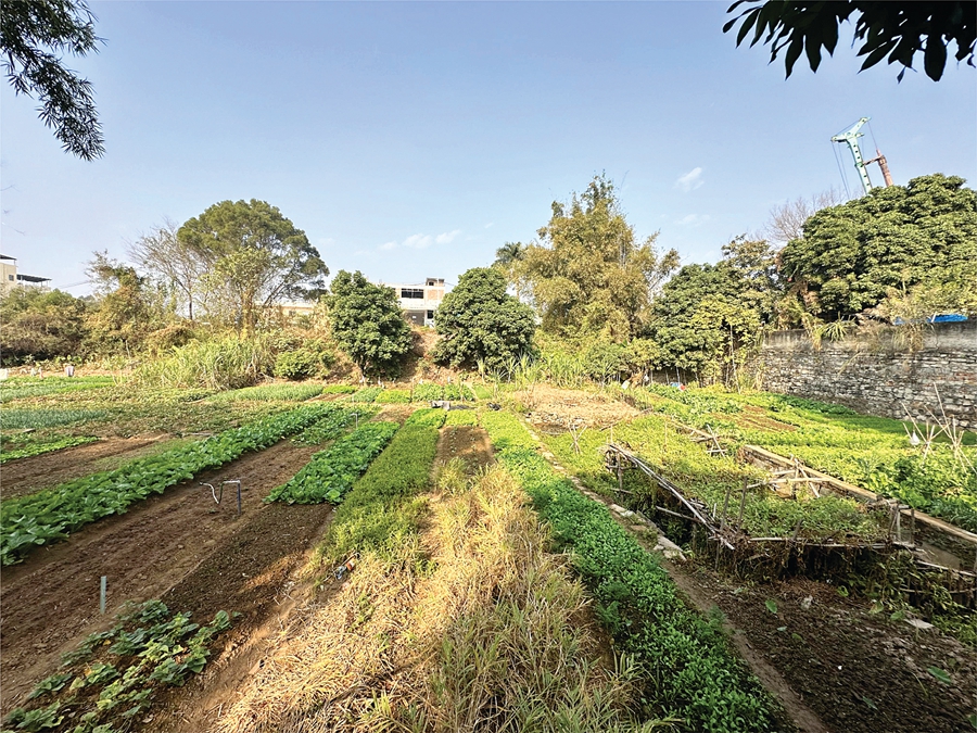 1月3日上午,趁著工作輪空,陳忠文一如往常地沿著東江邊騎行。騎至汝湖鎮(zhèn)新光村新圩村民小組附近時(shí),他放慢速度穿行至村道中,很快被一片瓜菜成畦、青翠欲滴的菜田吸引了。他便停下自行車,拾級(jí)而下,走在田埂間。