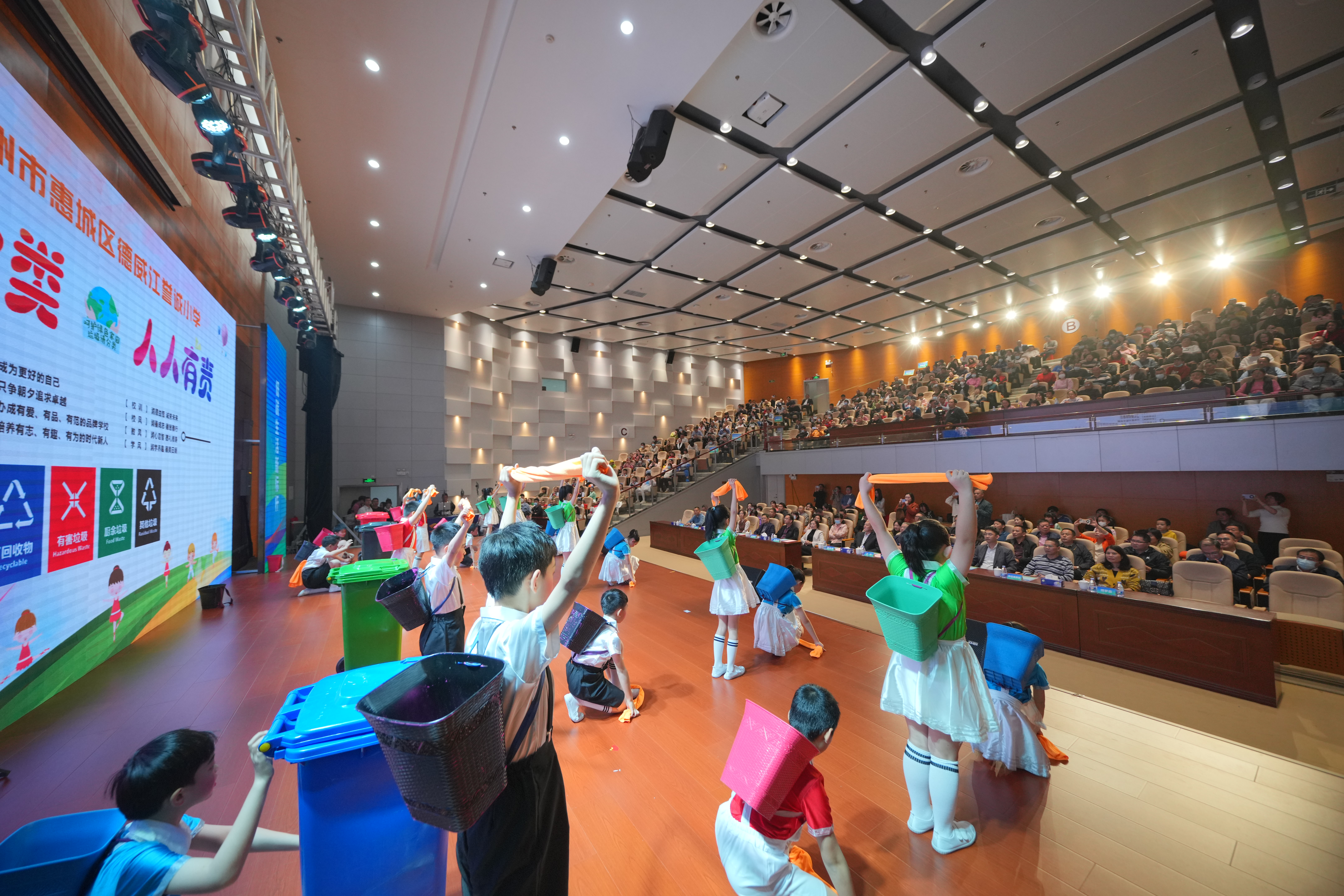 匯報(bào)會(huì)上,通過(guò)歌曲、舞蹈、小品、快板等形式,展現(xiàn)了惠州垃圾分類的發(fā)展歷程,引導(dǎo)市民樹(shù)立綠色、環(huán)保、健康的生活方式,推動(dòng)垃圾分類成為低碳生活新時(shí)尚。截至目前,惠州市累計(jì)開(kāi)展垃圾分類專題培訓(xùn)百余場(chǎng)次,開(kāi)展“i志愿 愛(ài)環(huán)保 垃圾分類齊參與”拾分美麗志愿服務(wù)活動(dòng)等主題宣傳活動(dòng)千余場(chǎng)次。匯報(bào)會(huì)上,為“童繪分類”惠州市第二屆垃圾分類主題兒童繪畫(huà)征集評(píng)選的優(yōu)勝者以及“當(dāng)好垃圾分類小衛(wèi)士,爭(zhēng)做新時(shí)代好少年”惠州市第二屆生活垃圾分類中小學(xué)生演講比賽的獲獎(jiǎng)選手頒獎(jiǎng)。
