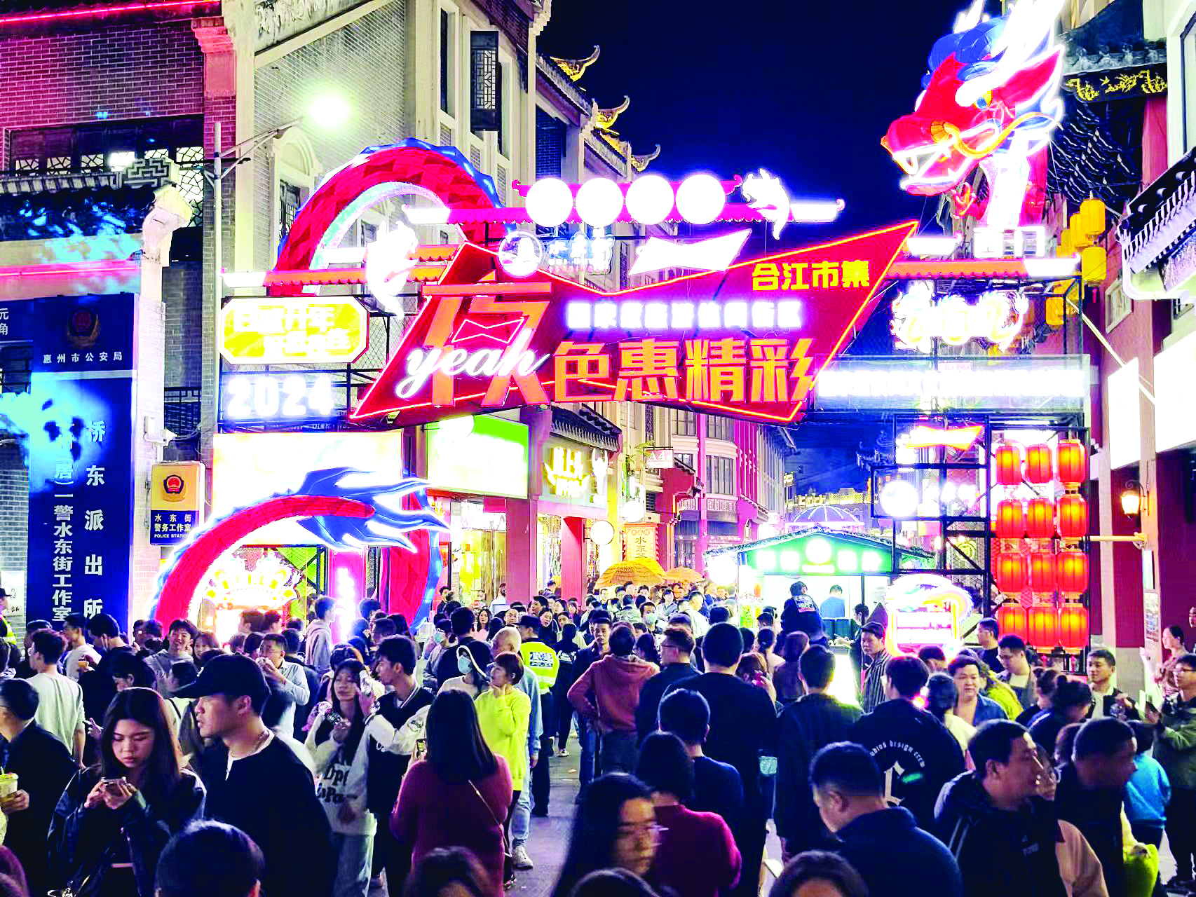 “在水東街,活動(dòng)可謂‘周周有亮點(diǎn)、月月有重點(diǎn)、季季有主題’,讓水東街人氣越來(lái)越旺!被莩菂^(qū)橋東街道黨工委書(shū)記楊惠強(qiáng)介紹,近年來(lái),水東街文旅商圈集中培育“夜色惠精彩”夜間文旅品牌,不斷豐富東江夜游、夜演、夜讀等新“夜”態(tài),形成了“潮生活+夜時(shí)尚”的東江活力街區(qū)。