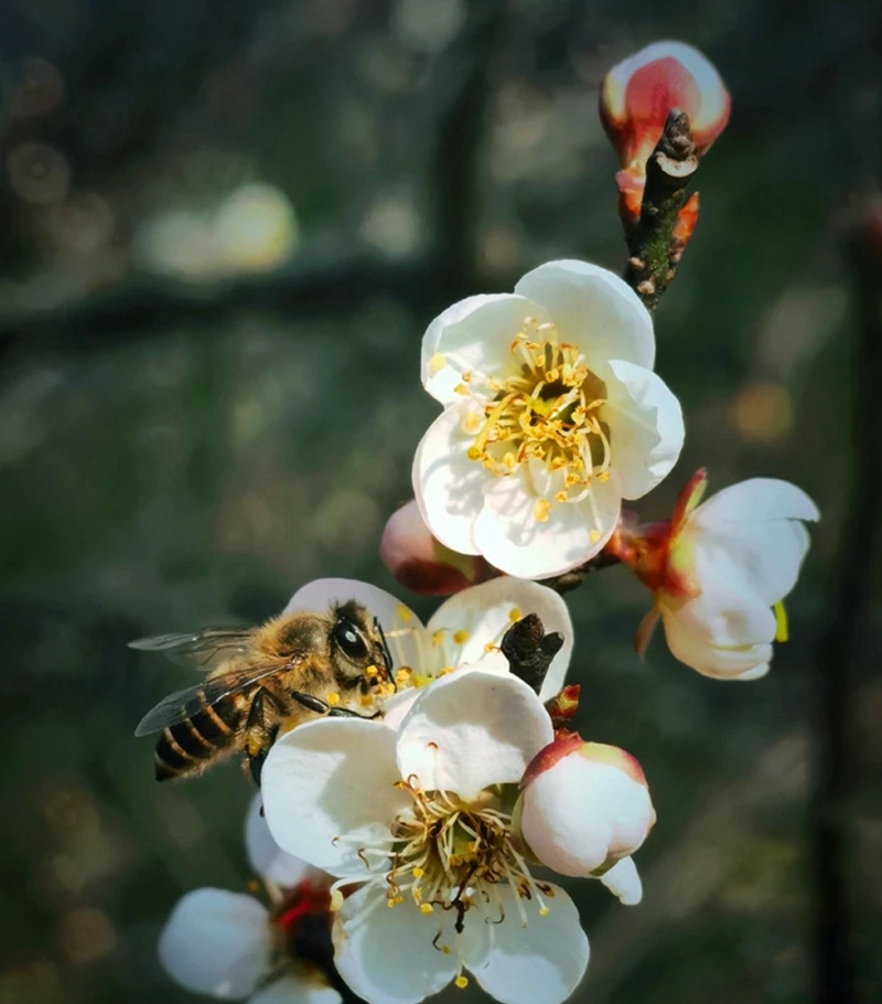 盛放的梅花與遠(yuǎn)處的掛榜閣相得益彰。