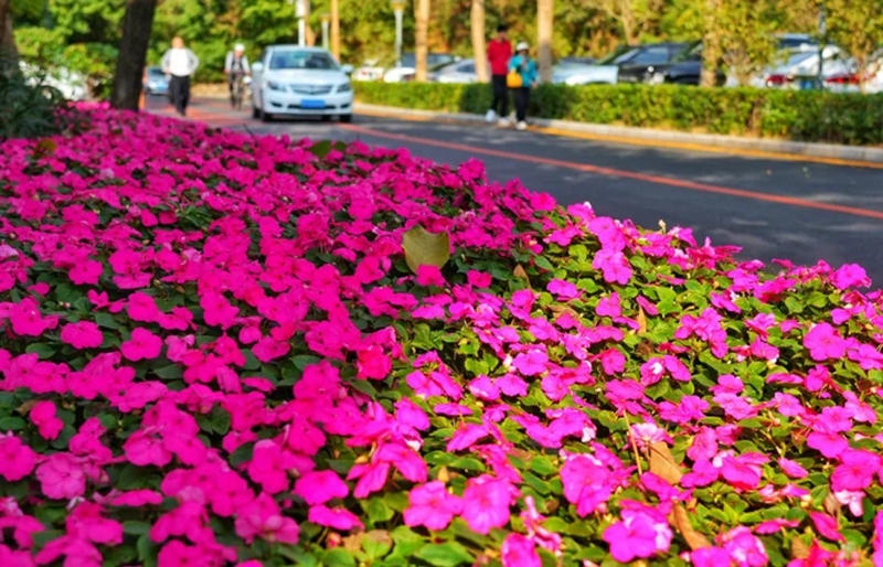 冬日里,惠州市紅花湖景區(qū),梅花、山茶花、鳳仙花、紫荊花等爭(zhēng)相開放。人們?cè)谇绾锰鞖鈦淼骄皡^(qū)游玩、運(yùn)動(dòng)健身,享受陽(yáng)光的溫暖,讓寒冷的冬天多了幾分暖意與情調(diào)。