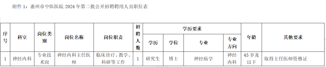惠州市中醫(yī)醫(yī)院2024年第二批公開招聘聘用人員