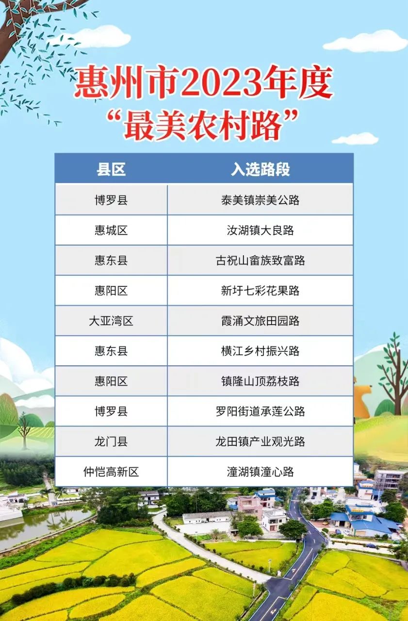 日前,市交通運(yùn)輸局、市公路事務(wù)中心公布了惠州市2023年度“最美農(nóng)村路”名單,博羅縣泰美鎮(zhèn)崇美公路等10條農(nóng)村公路上榜。一起來看具體名單~