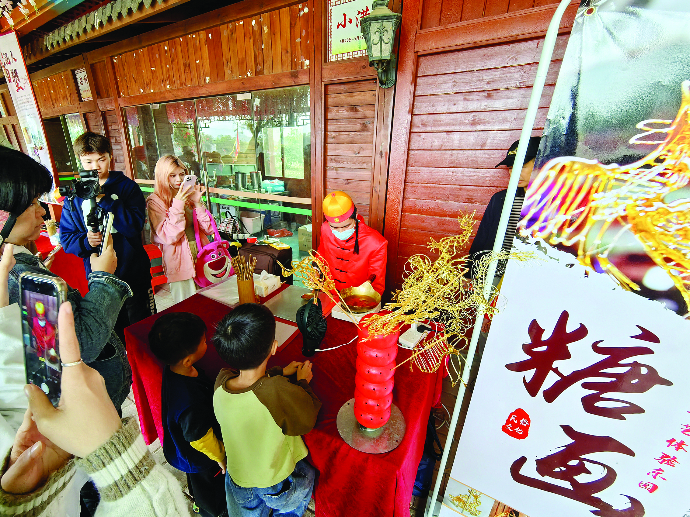 日前,在博羅縣湖鎮(zhèn)鎮(zhèn)的廣東航天農(nóng)業(yè)科技生態(tài)園民間藝術(shù)互動(dòng)體驗(yàn)區(qū),手藝傳承人忙著為游客制作糖畫(huà)。春節(jié)臨近,我市各地張燈結(jié)彩,不少景區(qū)組織新春嘉年華活動(dòng),讓游客感受熱騰騰的煙火氣和濃濃的年味。
