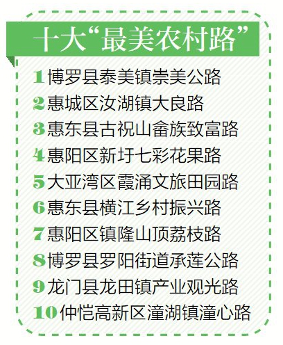 惠州日報訊 (記者陳春惠 通訊員曹娟)記者昨日從市公路事務(wù)中心獲悉,惠州市2023年度十大“最美農(nóng)村路”出爐!為推動農(nóng)村公路高質(zhì)量發(fā)展,聚焦農(nóng)村公路“實、安、綠、美、融”的發(fā)展目標(biāo),2023年12月市公路事務(wù)中心面向全市評選建設(shè)成效突出、特色鮮明、路況優(yōu)良的十大“最美農(nóng)村路”。經(jīng)過資格審核、網(wǎng)絡(luò)投票、現(xiàn)場評分、核審公示等環(huán)節(jié)重重“考驗”,博羅縣泰美鎮(zhèn)崇美公路等10條“最美農(nóng)村路”脫穎而出。