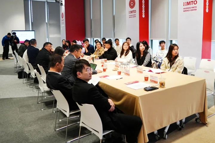清華學(xué)子們?cè)诨葜莞郯呐_(tái)僑綜合服務(wù)中心與企業(yè)、基地、平臺(tái)相關(guān)負(fù)責(zé)人等進(jìn)行交流。