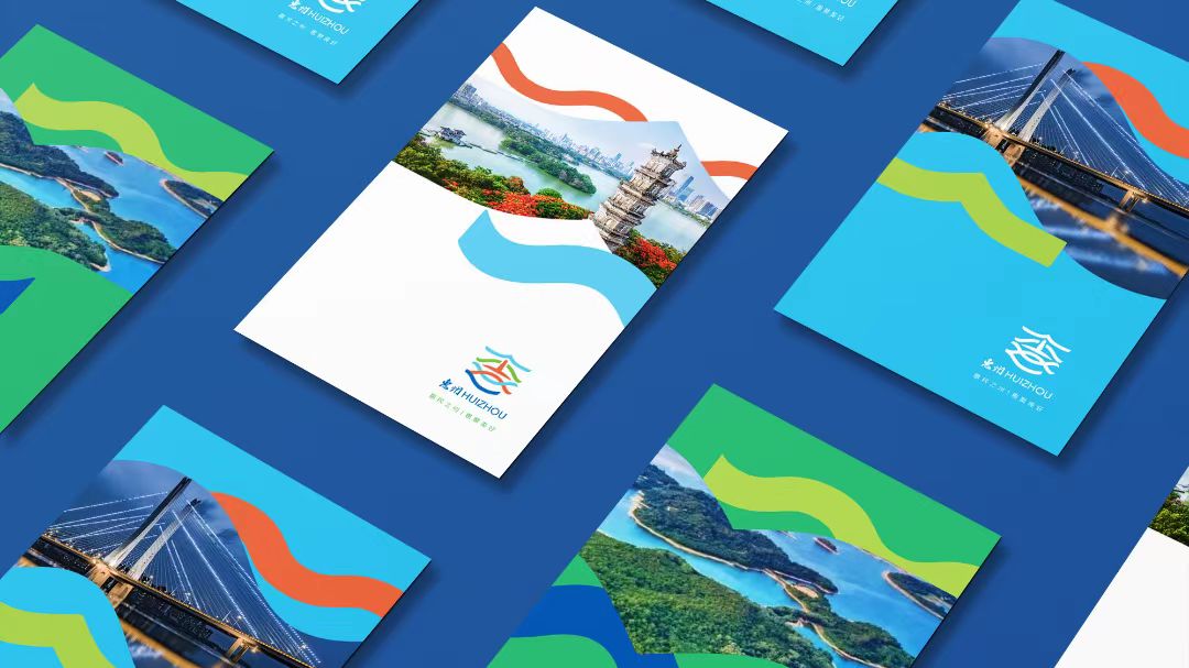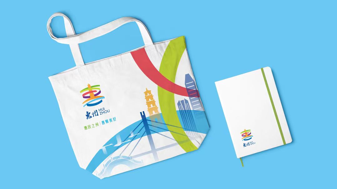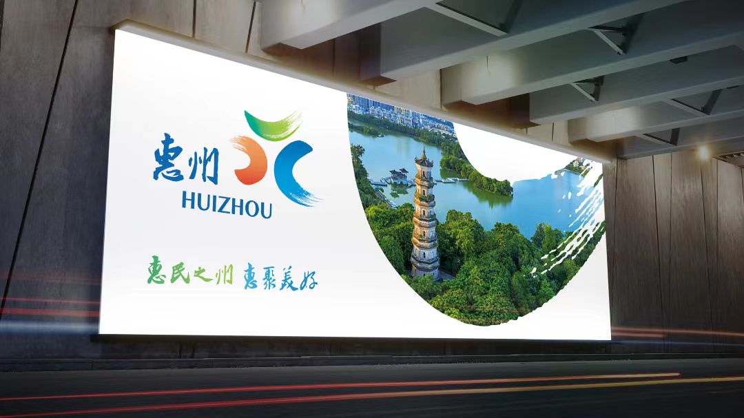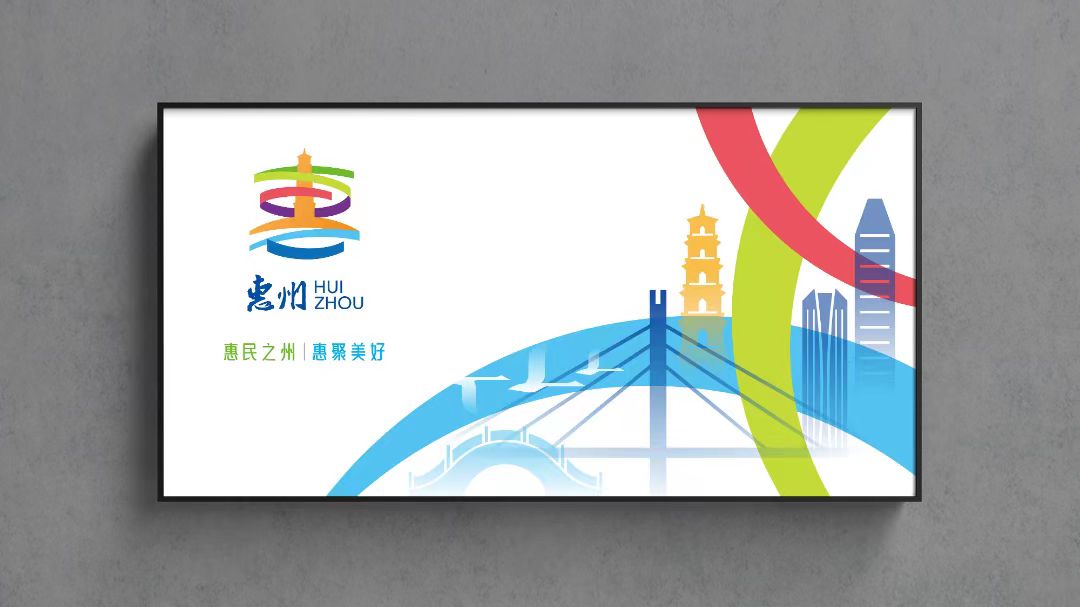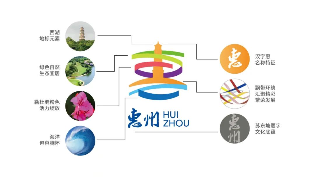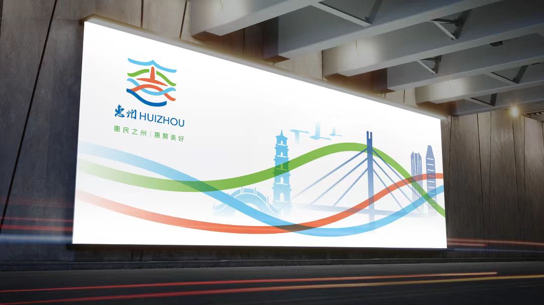 標(biāo)志由惠州地標(biāo)“泗洲塔”與象征美好匯聚、繁榮發(fā)展的環(huán)繞飄帶創(chuàng)意變化成“惠”字,強(qiáng)調(diào)城市品牌名稱。整體突出城市的歷史底蘊(yùn)與現(xiàn)代發(fā)展,構(gòu)成多元美好匯聚的視覺(jué)意象。其中,綠色飄帶描繪了城市的綠色自然與宜居生態(tài),紅色飄帶代表活力綻放的市花勒杜鵑,體現(xiàn)城市紅色文化,綠色飄帶象征城市的海洋文化與包容胸懷。視覺(jué)核心“泗洲塔”橙色的運(yùn)用,則意在彰顯城市底蘊(yùn)深厚的歷史文化內(nèi)涵。此外,標(biāo)志在字體設(shè)計(jì)上以蘇東坡“惠州”二字書(shū)法風(fēng)格為藍(lán)本,突出城市東坡文化。