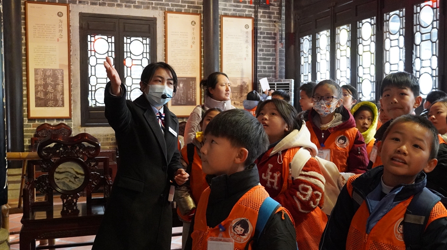 1月23日,惠州大幅度降溫,但是孩子們參加小惠研學(xué)的熱情不減,報(bào)名的孩子準(zhǔn)時(shí)到惠州日?qǐng)?bào)社集合。紙上得來終覺淺,絕知此事要躬行。研學(xué)是行走的課堂,當(dāng)書本知識(shí)與現(xiàn)實(shí)體驗(yàn)相結(jié)合,就會(huì)變得鮮活而有溫度。研學(xué)中,孩子們走進(jìn)東坡祠、西湖等地,探尋東坡先生在惠州的故事。東坡祠是國(guó)內(nèi)可以明確考證的蘇東坡親自籌建的故居所在地,這里有東坡井、古階步道、古樹名木等歷史遺跡,還修復(fù)了東坡祠、娛江亭、朱池、墨沼、翟夫子舍、林婆酒家等歷史要素。孩子們手拿研學(xué)手冊(cè),細(xì)心聆聽講解員姐姐的介紹,逐一了解東坡先生的生平故事。研學(xué)手冊(cè)上有詳細(xì)的任務(wù)和題目,大家邊聽邊記,了解了東坡家族關(guān)系譜、東坡仕途之路等。