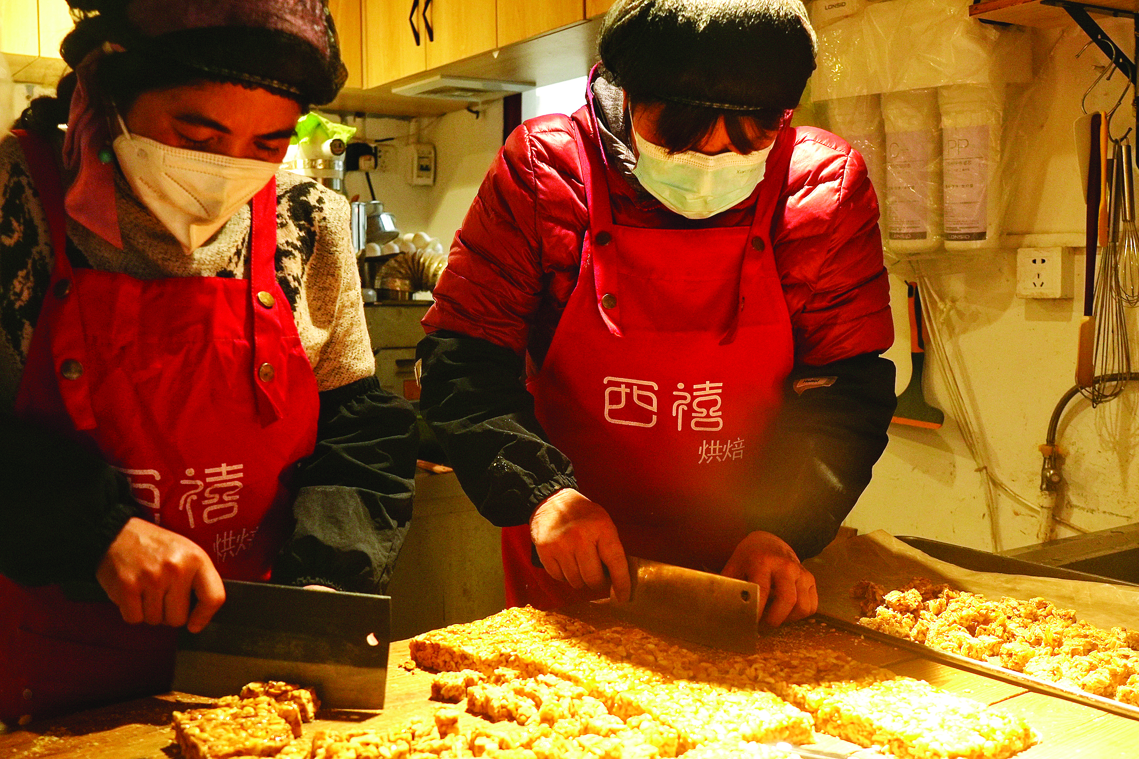 熬糖、炸花生和黑芝麻,加入糯米粉攪拌,裝盤并放入爐內(nèi)烤、出爐后切塊……近日,位于市區(qū)祝屋巷街頭的西禧烘焙坊總是一派繁忙的景象,在店主陳小麗與員工們的忙碌下,各種口味的糕點完成了一輪又一輪的制作。米餅、米糕作為應(yīng)節(jié)零食,更是憑借酥脆和軟糯的口感,成為許多老惠州人年貨的首選。