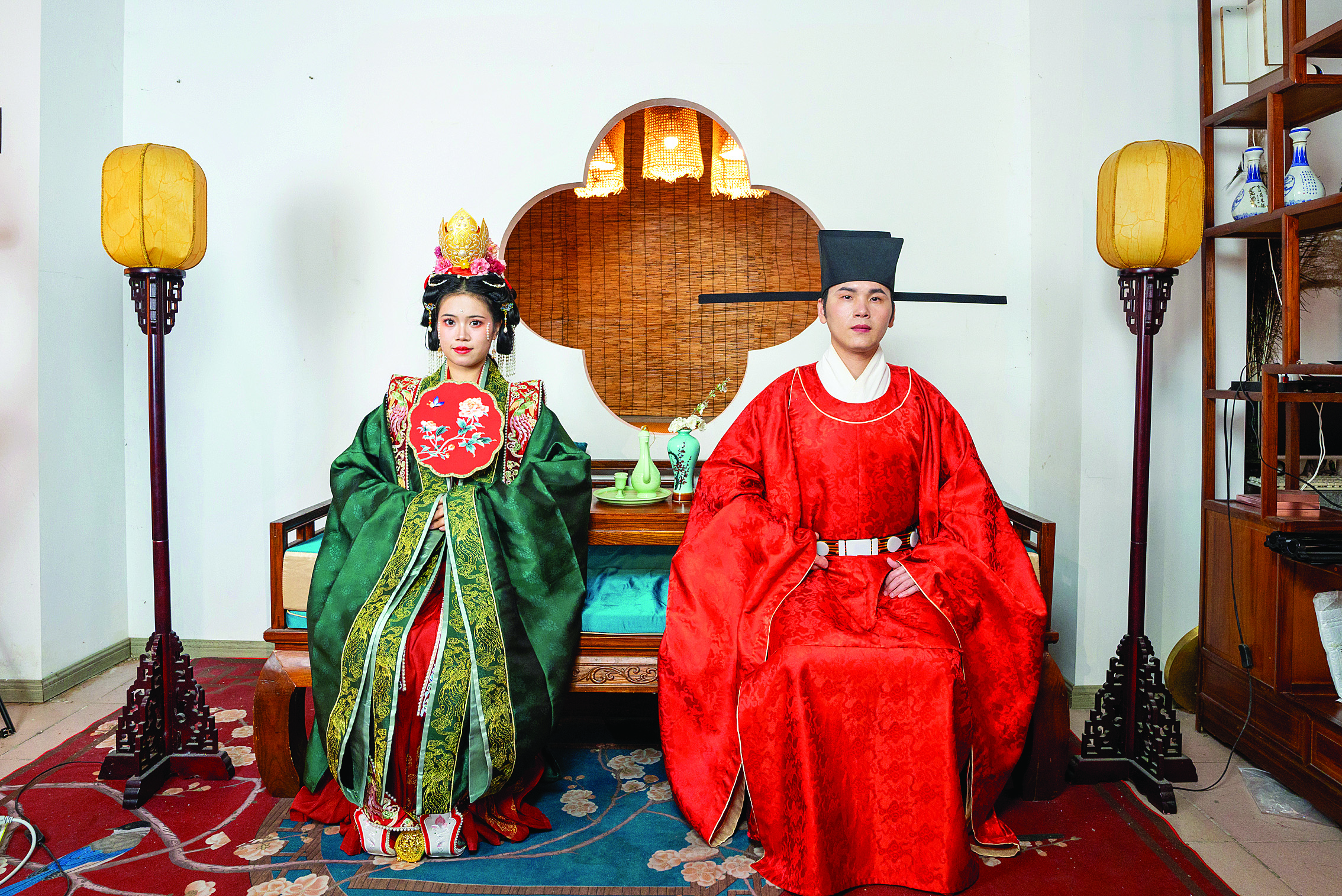宋式婚禮定妝照拍攝現(xiàn)場;葜萑請笥浾唿S昌榮 攝