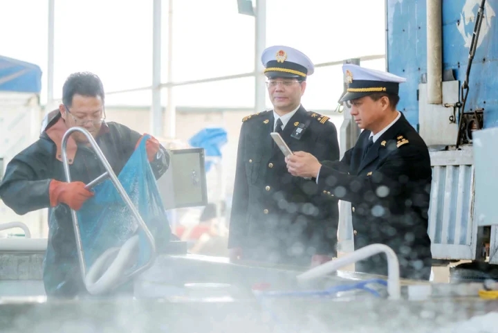 惠州海關關員對擬出口鰻魚開展現(xiàn)場監(jiān)管。攝影 通訊員吳敏