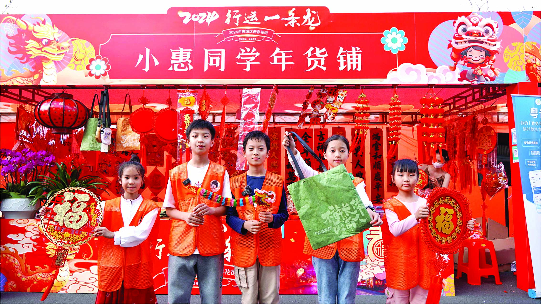 惠州日報小記者在小惠同學年貨鋪賣年貨。