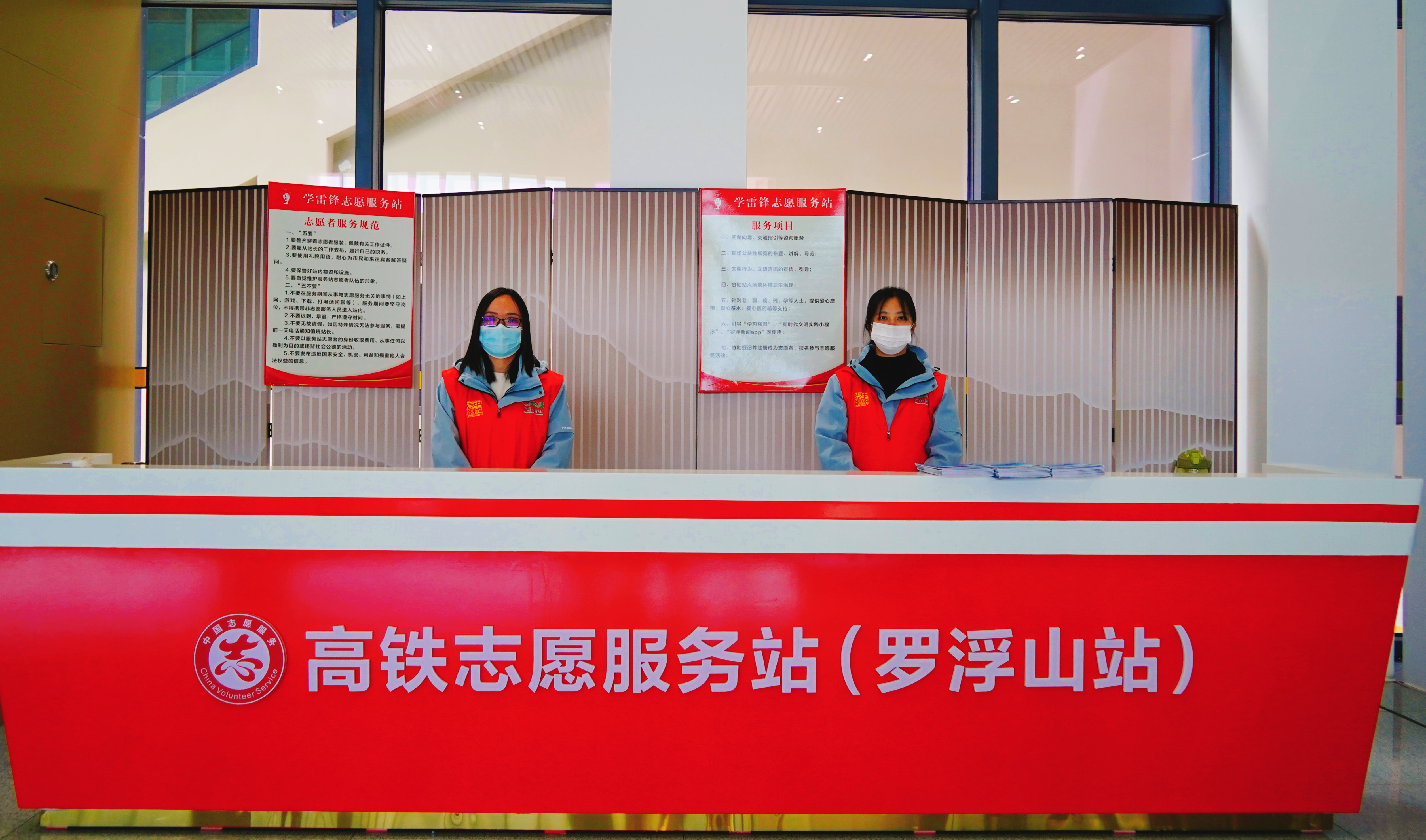 羅浮山高鐵站志愿者為旅客提供服務(wù)。
