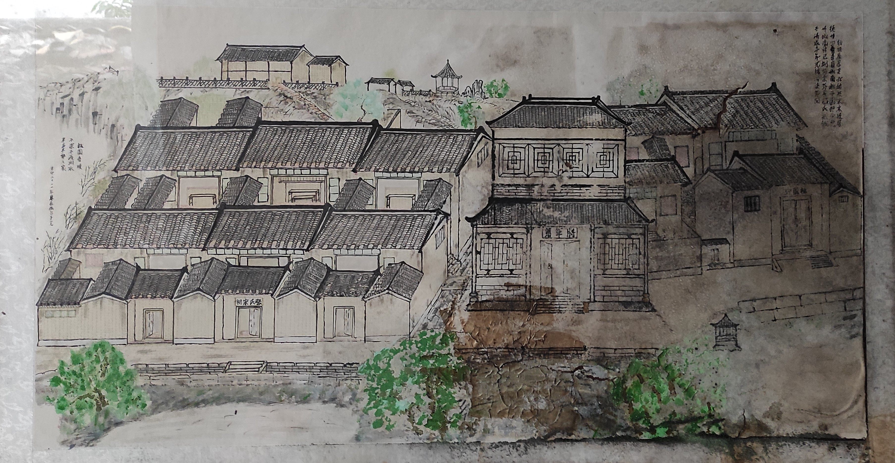 從后人的繪圖來看,張氏古建筑順著木荊岡的山勢而建,由南至北,分為張氏宗祠、將軍第、桃園三部分。