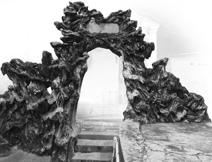 從有德堂大廳后門出去,可見一個仿太湖石修砌的拱門,造型獨特,保存完好。拱門上鑲嵌有一塊石碑,刻寫“梅塢”二字,為晚清著名金石書畫家符翕手書!懊穳]”與蘇東坡所寫松風(fēng)亭下的梅花遙相呼應(yīng),別有韻味。
