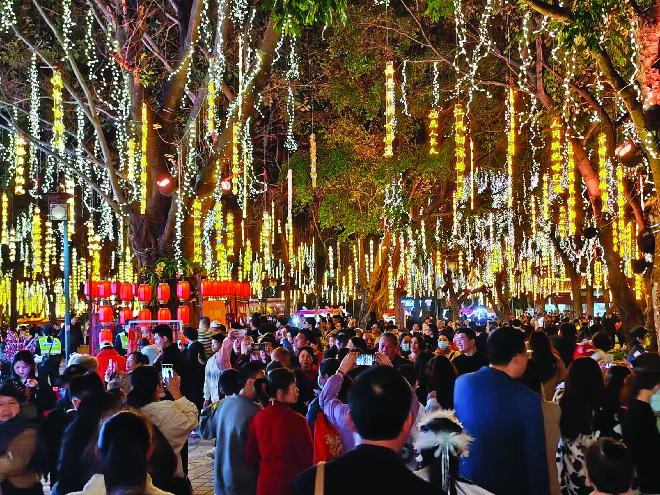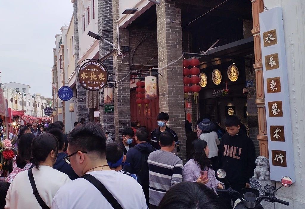 眾多游客在惠州市區(qū)水東街游玩;葜輺|江圖片社
