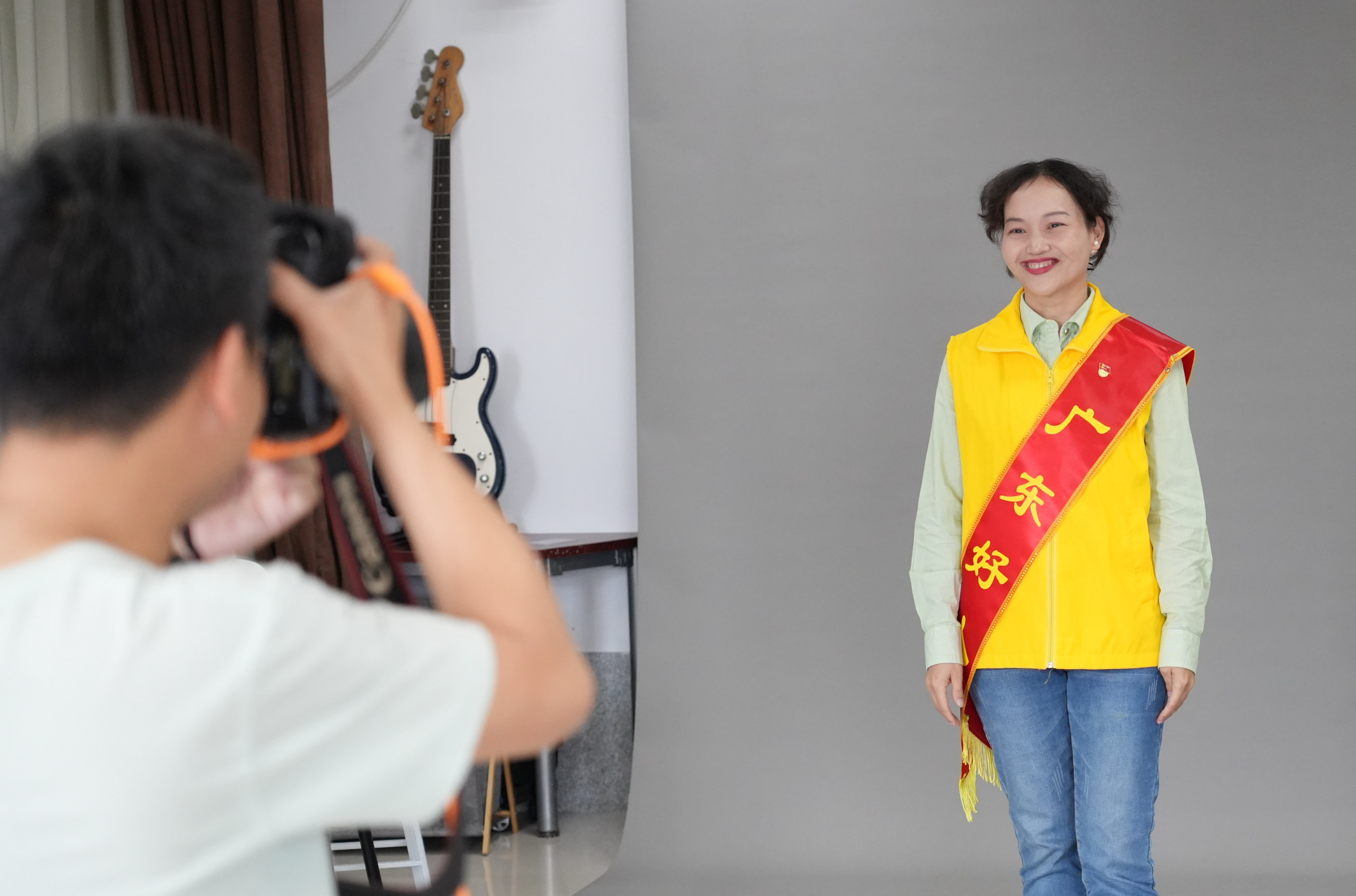 惠州日?qǐng)?bào)訊 (記者馬海菊 通訊員梁玉丹 張瑞芳)精致的妝容、燦爛的笑容、佩戴上榮譽(yù)綬帶……2月20日下午,廣東好人、惠東縣平山街道湖榕社區(qū)黨委副書記黃爍榕來(lái)到惠州東江圖片社,等待攝影師為她拍攝個(gè)人形象照。