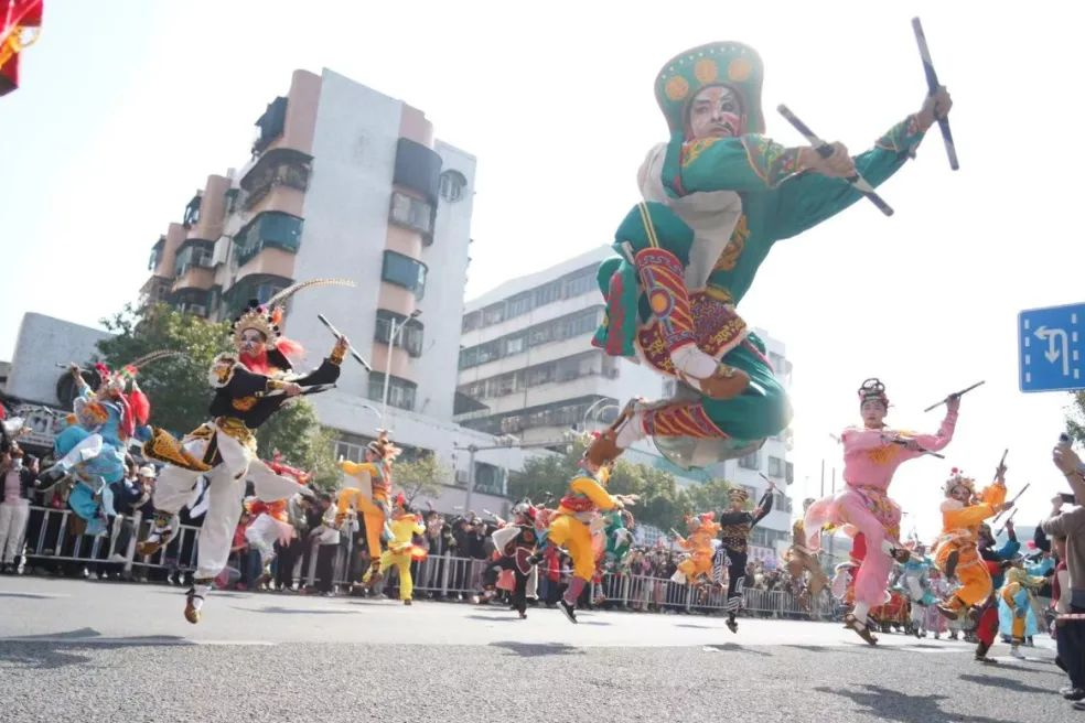 巡游沿途還設(shè)有英歌、醒獅等定點演出