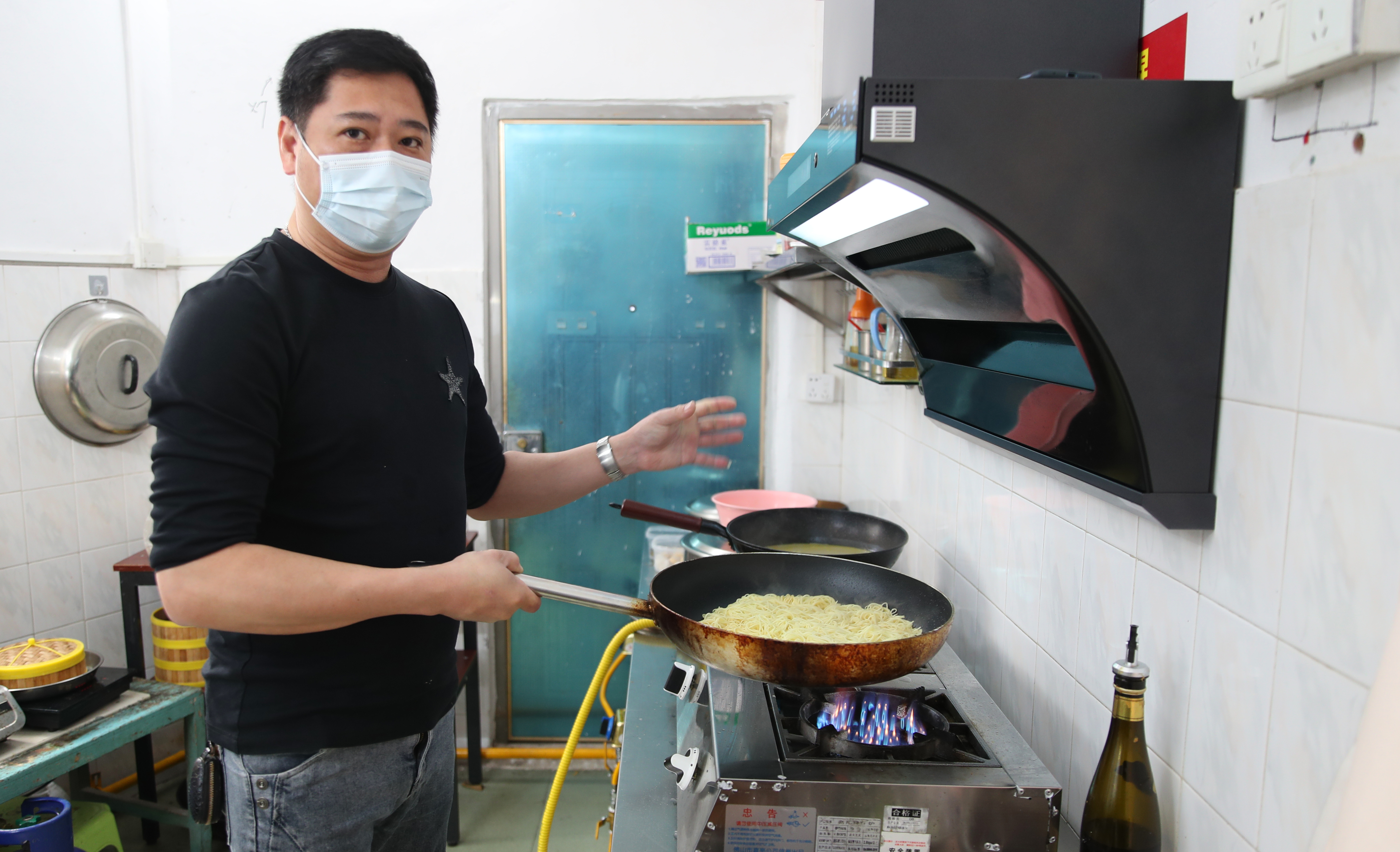 葉泳昌在做魚(yú)湯炒面;葜萑?qǐng)?bào)記者鐘暢新 攝