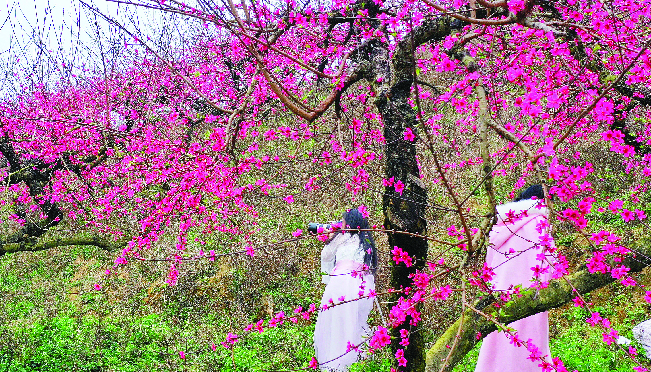 漫山遍野的桃花爭奇斗艷,吸引游客結(jié)伴前來觀賞。