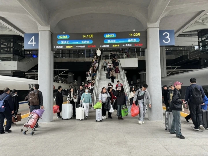 3月5日是春運(yùn)最后一天,自1月26日春運(yùn)啟動(dòng)以來,春運(yùn)期間惠州北站客流超57萬人次,其中發(fā)送30.56萬人次,同比增長123%,到達(dá)26.76萬人次,同比增長112%?土髯罡呒o(jì)錄出現(xiàn)在2月17日,當(dāng)日發(fā)送旅客11199人次。