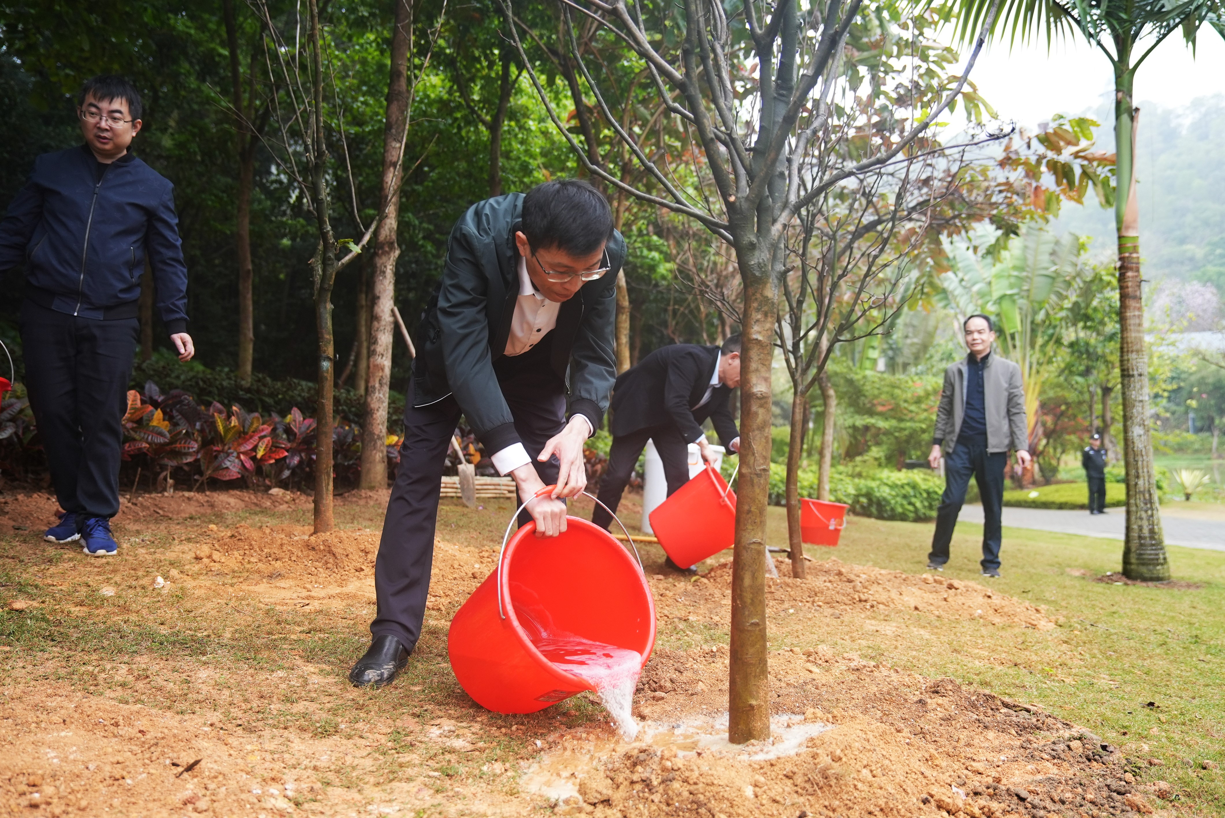 出席啟動儀式的相關(guān)代表在給種好的樹澆水。 惠州日報記者肖泓 羅劍業(yè) 攝