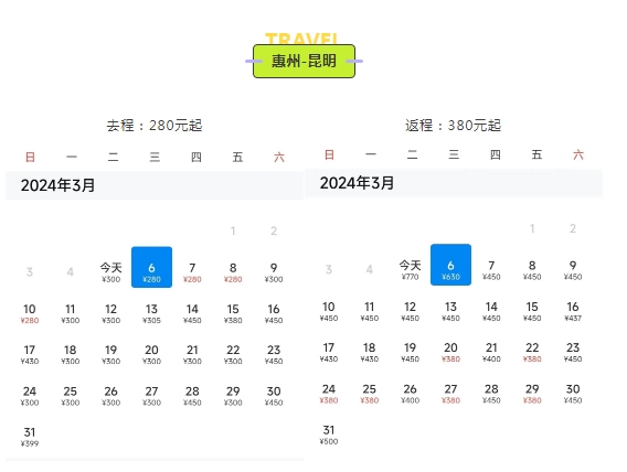 注:下述票價截圖時間基本在2024年3月5日14:30前后,票價不含機(jī)建燃油費(部分屬于中轉(zhuǎn)航班價格,機(jī)建費一般在90-120元之間),數(shù)據(jù)均來自攜程,因機(jī)票變動較快,大家購票價格請以實際為準(zhǔn)!