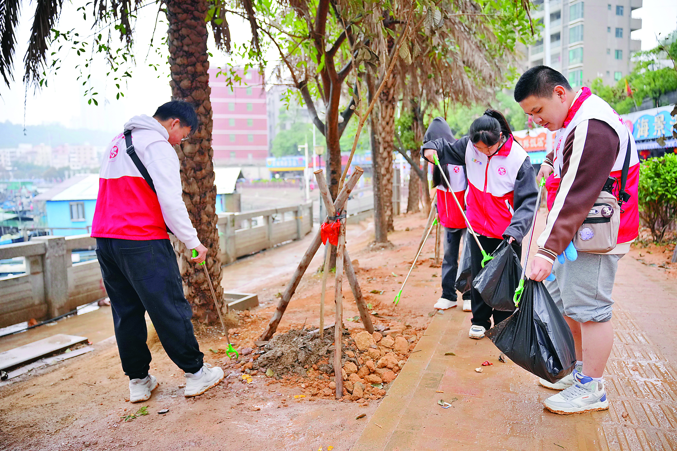 據(jù)悉,本次活動包括了撿跑和植樹兩項內容,撿跑分兩個隊、兩條路線分別出發(fā)。志愿者們手拿垃圾鉗、垃圾袋,從漁人碼頭廣場出發(fā),分別沿著各自路線撿跑,助力環(huán)境煥顏提升,用實際行動踐行文明,助力文明城市創(chuàng)建。而在植樹活動中,志愿者們從漁人碼頭出發(fā),行至海鮮市場的行道邊種植黃花風鈴木樹苗。