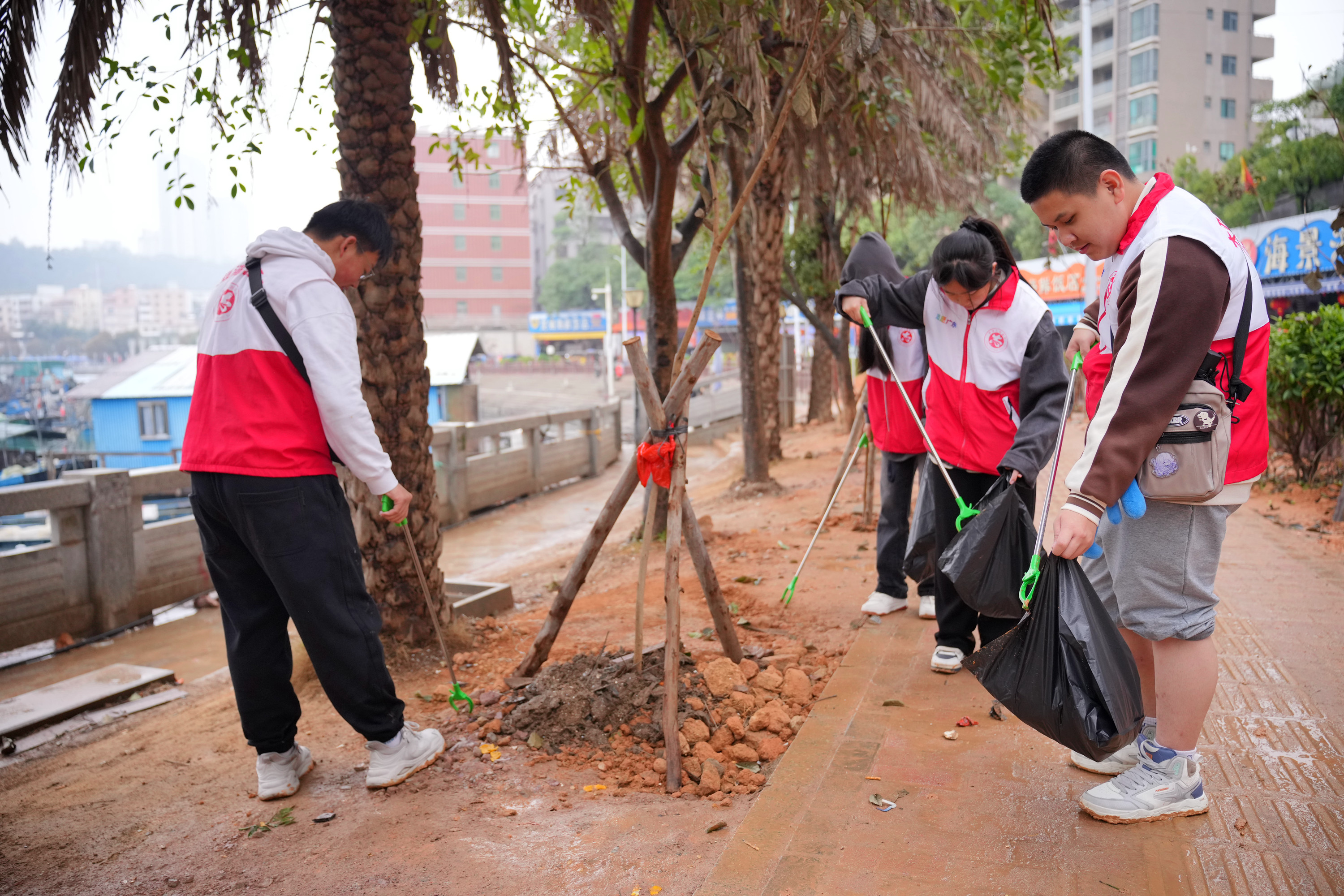 志愿者手拿垃圾鉗、垃圾袋參加添綠撿跑志愿服務(wù)活動(dòng);葜萑?qǐng)?bào)記者周楠 攝