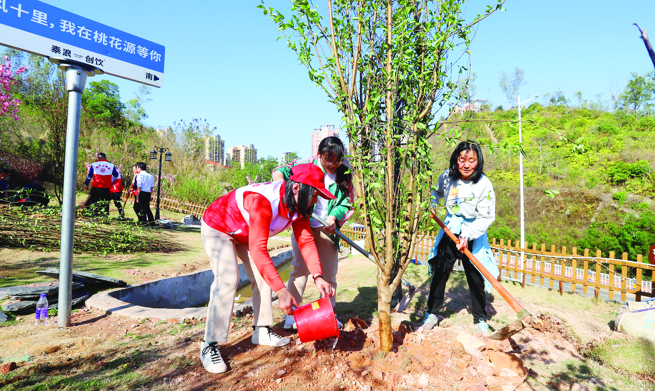 3月12日,惠州市直宣傳文化系統(tǒng)在市區(qū)桃花源景區(qū)開展“文明實(shí)踐林”義務(wù)植樹活動(dòng)。