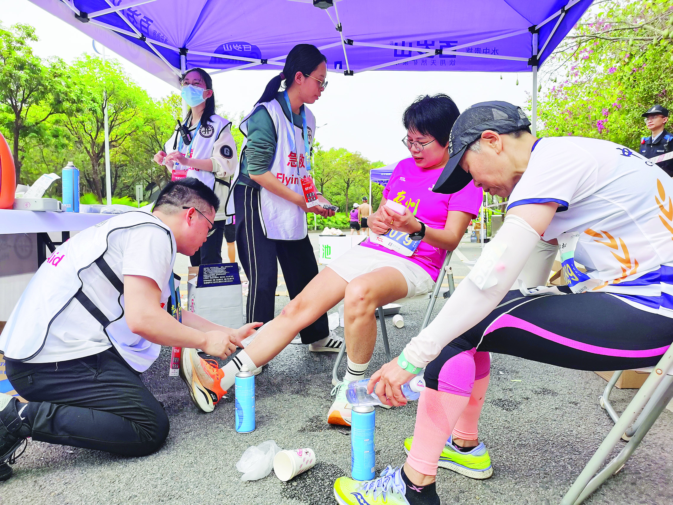 市中心人民醫(yī)院相關(guān)負(fù)責(zé)人介紹,馬拉松開賽大約一個小時后,個別參賽者出現(xiàn)了不同程度的皮外傷、腿部抽筋、扭傷等情況,陸續(xù)進(jìn)入市中心人民醫(yī)院醫(yī)療站點。該院各醫(yī)療站點的醫(yī)護(hù)人員通力合作,有條不紊地迅速予以相應(yīng)處理,參賽者均無大礙。