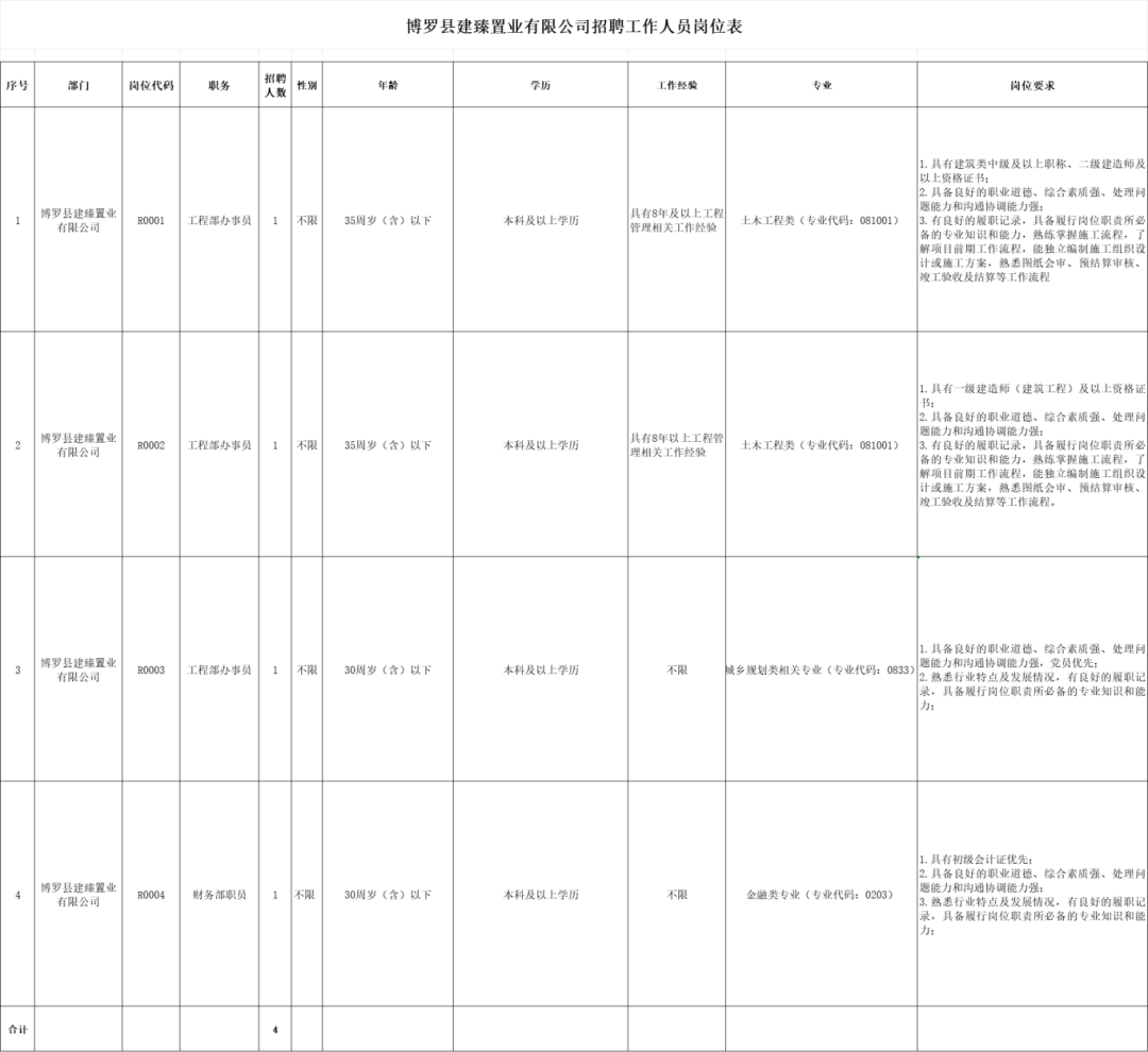 博羅縣建臻置業(yè)有限公司2024年公開招聘4名工作人員