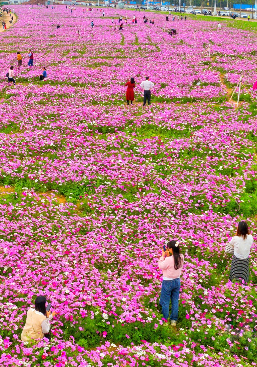惠城區(qū)小金河大道路邊上有30畝格;ㄊ㈤_,吸引了許多游客觀賞打卡。