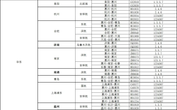 。11)合肥:每天2班,周1357每天最高可達到3班