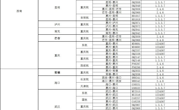 。5)昆明:每天2班,周1357每天最高可達到3班