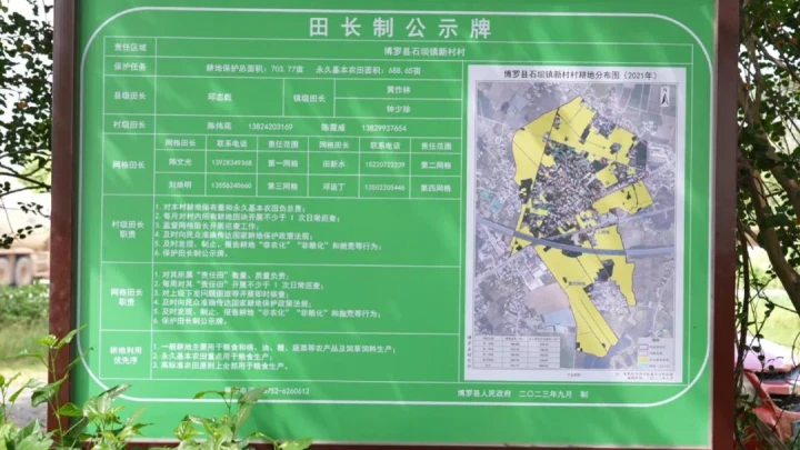 博羅縣石壩鎮(zhèn)新村村田長(zhǎng)制公示牌。