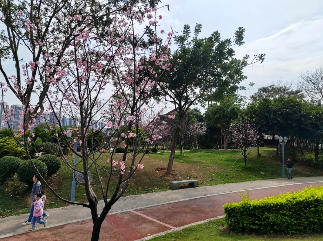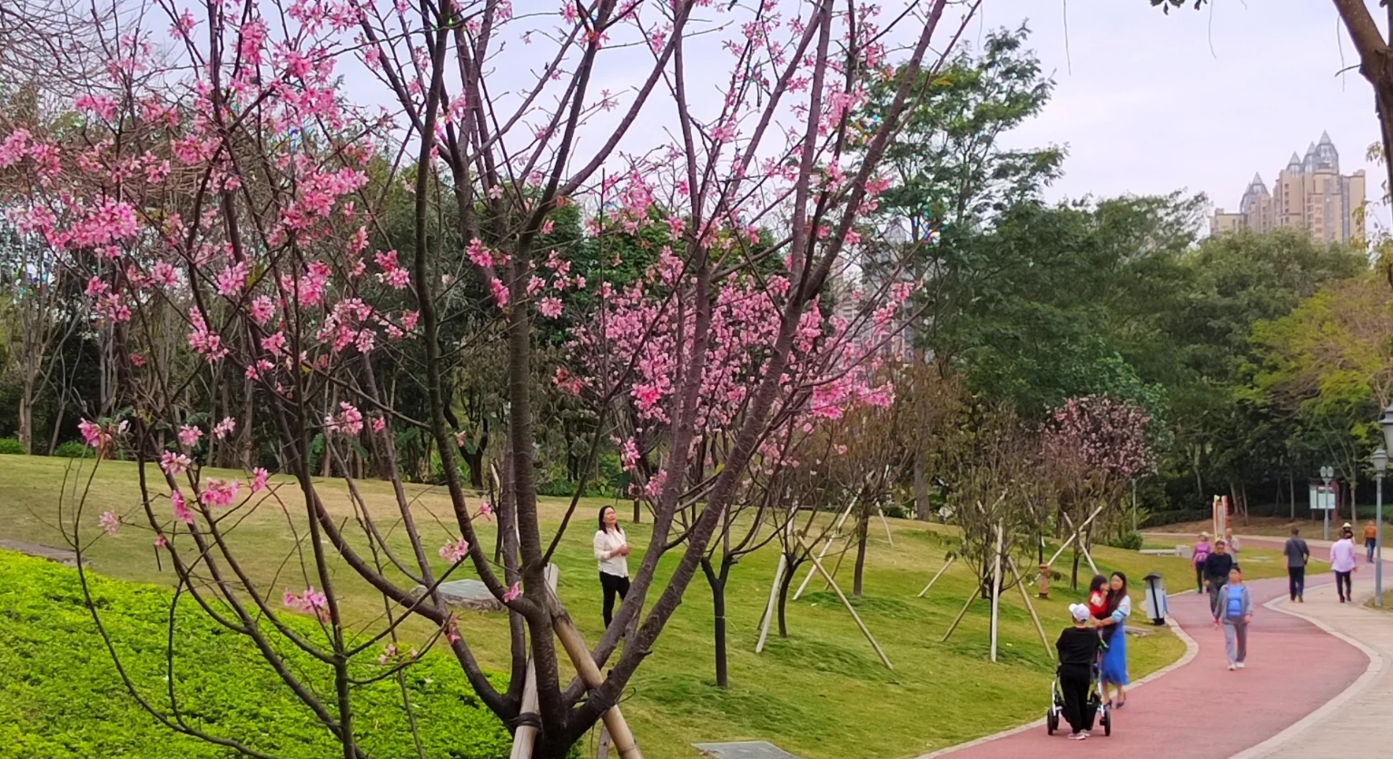 金山湖公園工作人員介紹,櫻花是落葉喬木,在溫暖的華南地區(qū)會呈現(xiàn)半落葉狀態(tài)。櫻花綻放時(shí),花開滿天,花團(tuán)錦簇,如云似霞、滿樹爛漫,深受人們喜愛。