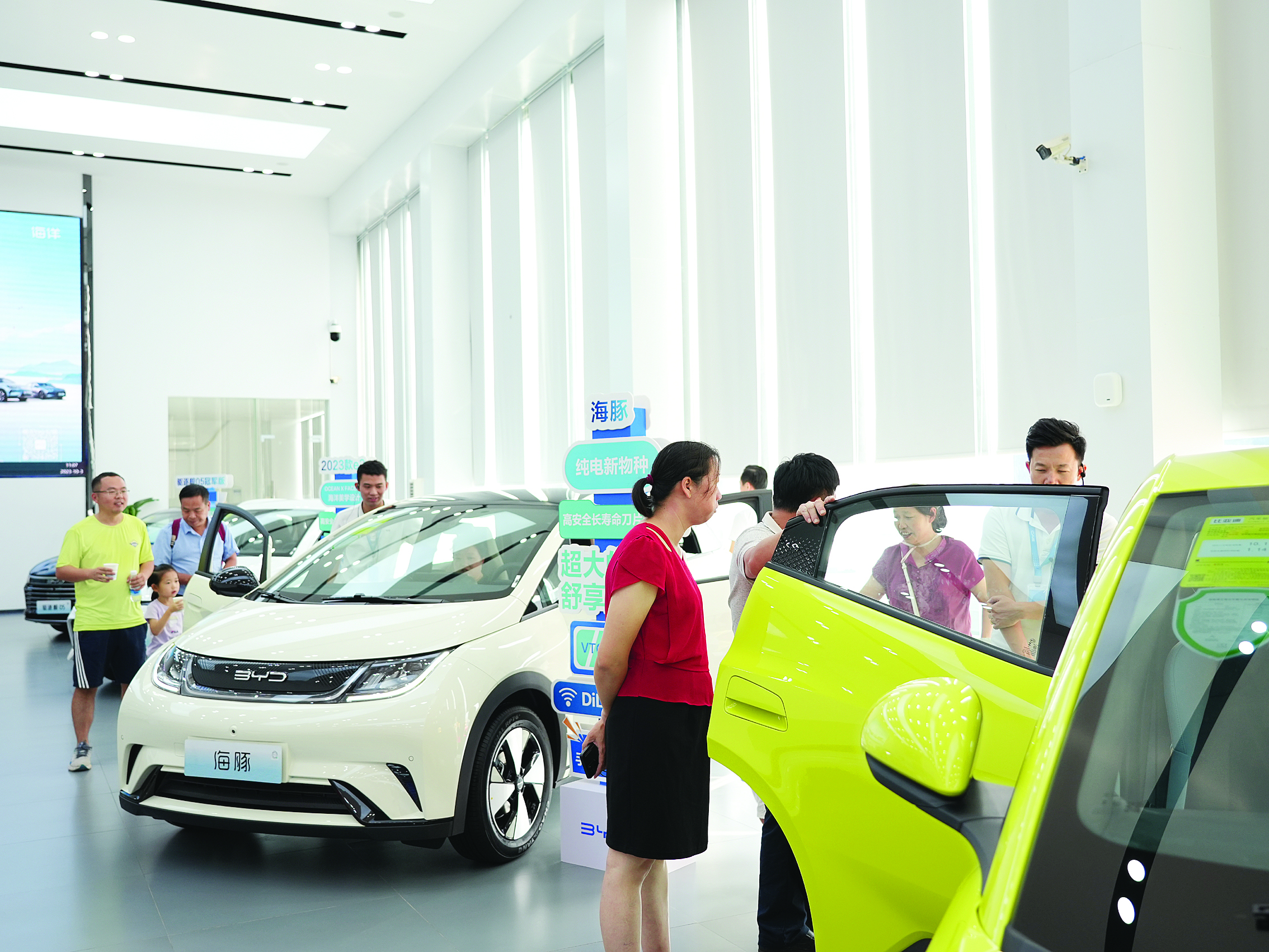 日前,不少消費者前往比亞迪汽車惠州市惠迪新能源4S店(王朝店)看車、訂車!凹依镉幸惠v混動SUV了,這次計劃再添一輛純電轎車。”去年10月,市民張女士換了一輛混動SUV,開了一段時間后,她對新能源汽車有了更深的認識。