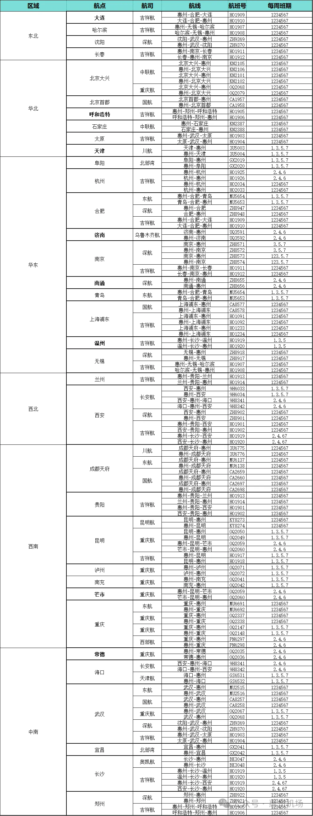 惠州機(jī)場(chǎng)2024年夏秋航季航班時(shí)刻表