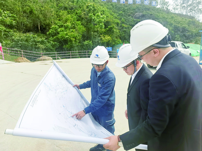 惠州工行工作人員在廣東“十四五”重點實施項目惠州中洞抽水蓄能項目工地調研;葜莨ば泄﹫D