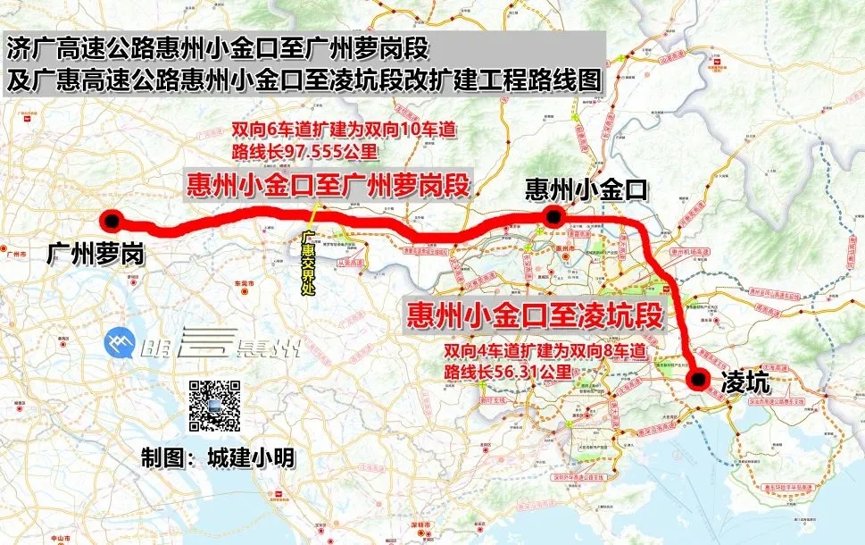 濟(jì)廣高速和廣惠高速公路擴(kuò)建工程:作為重點(diǎn)建設(shè)工程,其中濟(jì)廣高速公路小金口至蘿崗段將由雙向六車(chē)道擴(kuò)建為雙向十車(chē)道,廣惠高速公路小金口至凌坑段將由雙向四車(chē)道擴(kuò)建為雙向八車(chē)道,計(jì)劃今年底開(kāi)工,2029年12月投產(chǎn)。