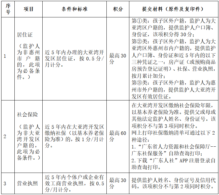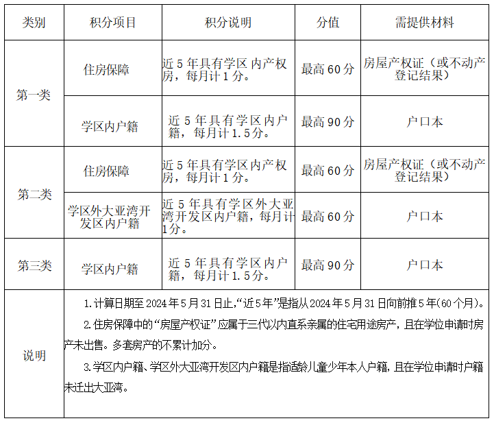 2.2024年大亞灣開發(fā)區(qū)異地務(wù)工人員隨遷子女積分申請義務(wù)教育階段公辦學校起始年級學位項目和標準
