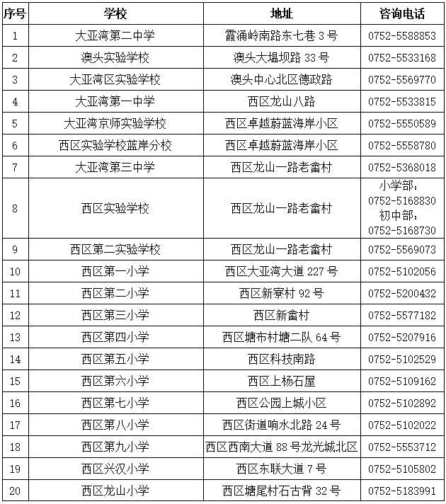 3.2024年大亞灣開發(fā)區(qū)義務(wù)教育學校招生咨詢電話